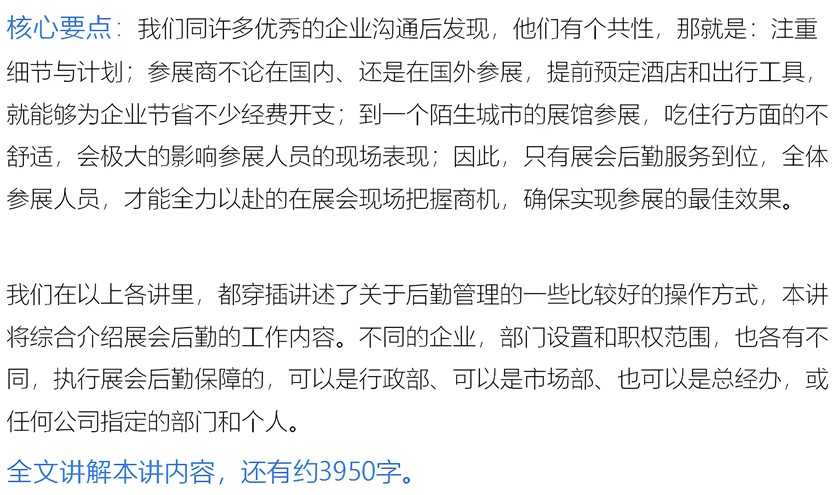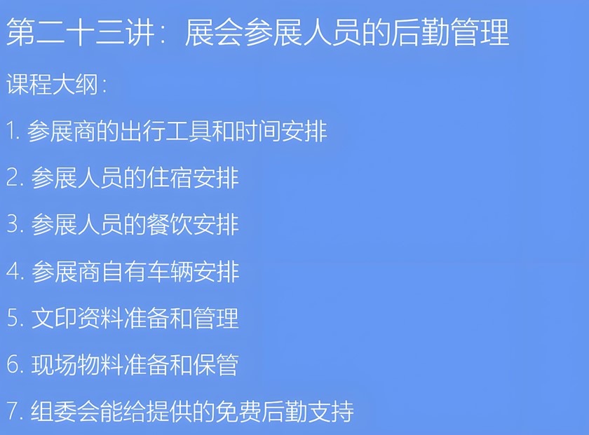 参展人员的后勤管理-参展商实战培训核心章节