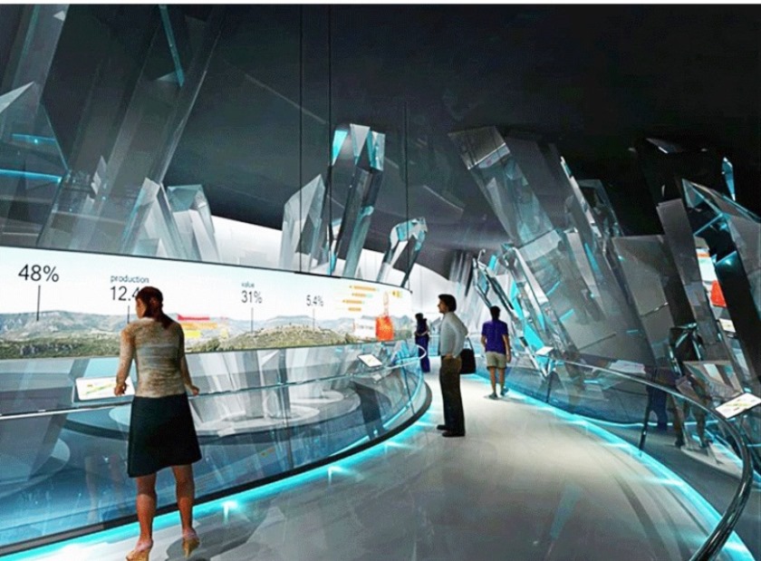 全息投影:全息投影是借助多媒体互动科技将传统的展示实现人机交互的参观体验。数字展厅使用最新的影视动画技术,结合独到的图形数字和多媒体技术,以各类新颖的互动科技吸引参观者。数字展厅也可以说是集各种多媒体展览展示系统为一体的综合展示平台,包括数字沙盘、球幕影厅、互动投影、及触摸屏等。而这些高科技的融入会让整个展厅变得高端有内涵,给观众带来强大的视觉震撼感。