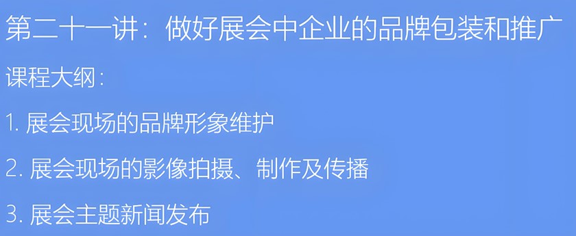 • 展商品牌包装与推广-参展商实战培训核心章节