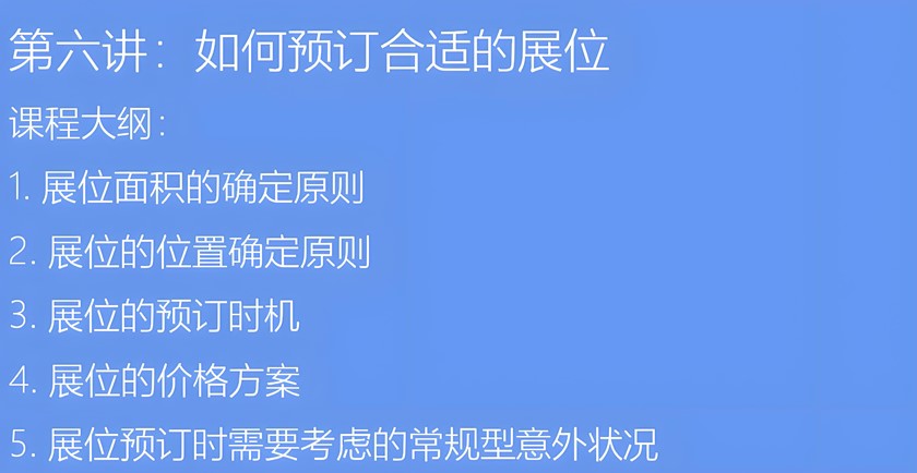 如何预订合适的展位-参展商实战培训核心章节如何预订合适的展位-参展商实战培训核心章节如何预订合适的展位-参展商实战培训核心章节如何预订合适的展位-参展商实战培训核心章节